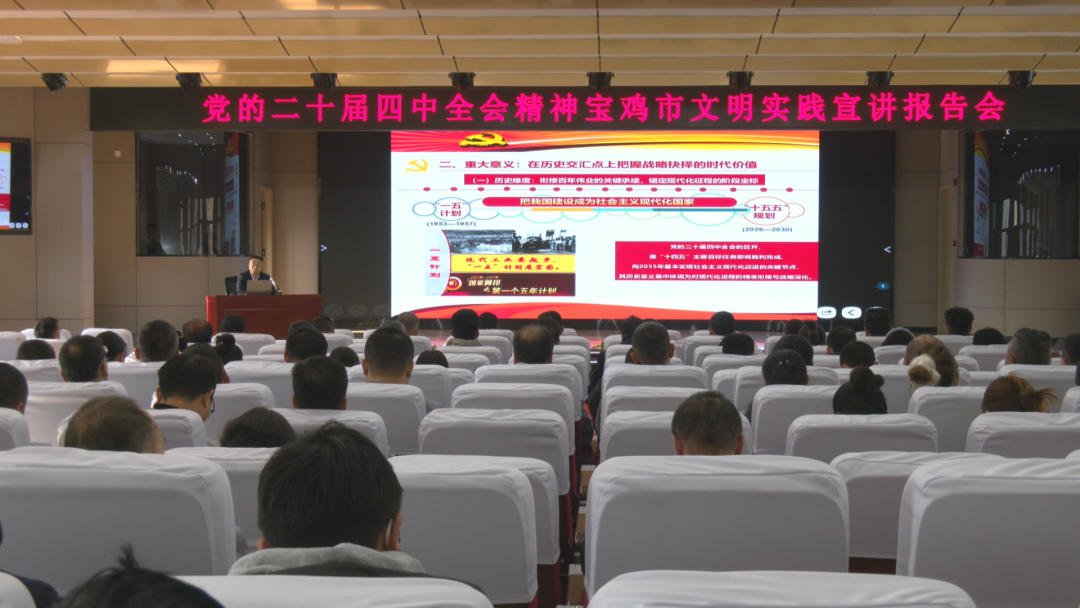 宣讲会上,市级新时代文明实践宣讲师、渭滨区委理论宣讲团成员、区委党校讲师曹晓宁以《深学笃行党的二十届四中全会精神接续推进中国式现代化》为题,围绕党的二十届四中全会的重大意义、核心要义和实践要求,系统梳理了“十四五”期间党和国家事业发展取得的辉煌成就,结合我市在产业升级、城乡融合、民生改善等领域的生动实践和显著成效,通过深入的政策解读和鲜活的案例分析,将宏大理论转化为贴近基层、贴近群众的生动讲述,引起了现场观众的强烈共鸣和深入思考。